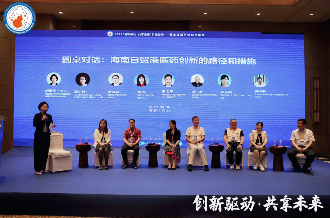 四川省中医药管理局原副局长罗建、海南省市场监督管理局原一级巡视员李治平、海南大学药学院副院长黄玲、海南医学院药学院副院长高炳淼、海南师范大学化学与化工学院院长陈光英、北京鑫开元医药科技有限公司海南分公司负责人夏中宁、北京新领先医药科技发展有限公司总裁、杭州康领先医药科技有限公司总经理高世静等,在主题为“海南自贸港医药创新的路径和措施”的圆桌论坛中积极献策。J9游会药业集团董事长、J9游会药业科协主席刘景萍主持论坛。